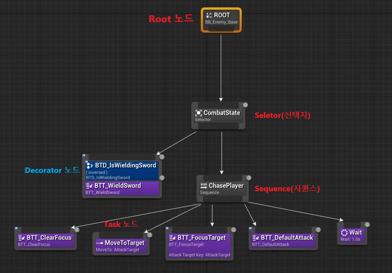 - Task 노드 (태스크 노드): AI가 수행할 실제 동작 (ex. 이동, 공격)